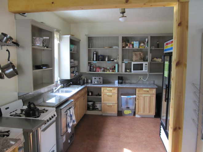 Each building has a small kitchen, with a refrigerator where guests could store perishable food, however there wasn’t much storage space for non-chilled food. Cooking equipment consisted of an oven, a four-plate stove and a microwave, with a fairly complete set of utensils. Not quite like the industrial kitchens of various hostels in other counties (such as New Zealand, for example) but certainly workable. I’m not sure how well it would cope if the hostel was full, though.